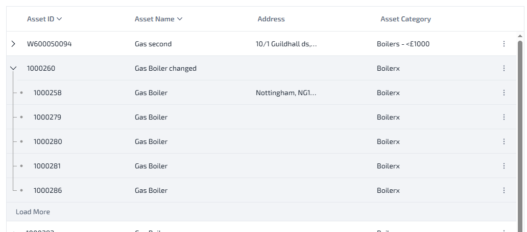 If there are more than 5 child assets assigned Load More appears at the bottom of the list, select it to show the next 5 assets and so on.