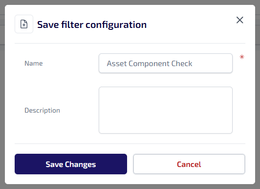 Save Filters - saves the current filters for future use. You’ll need to provide a Name, and optionally a description.