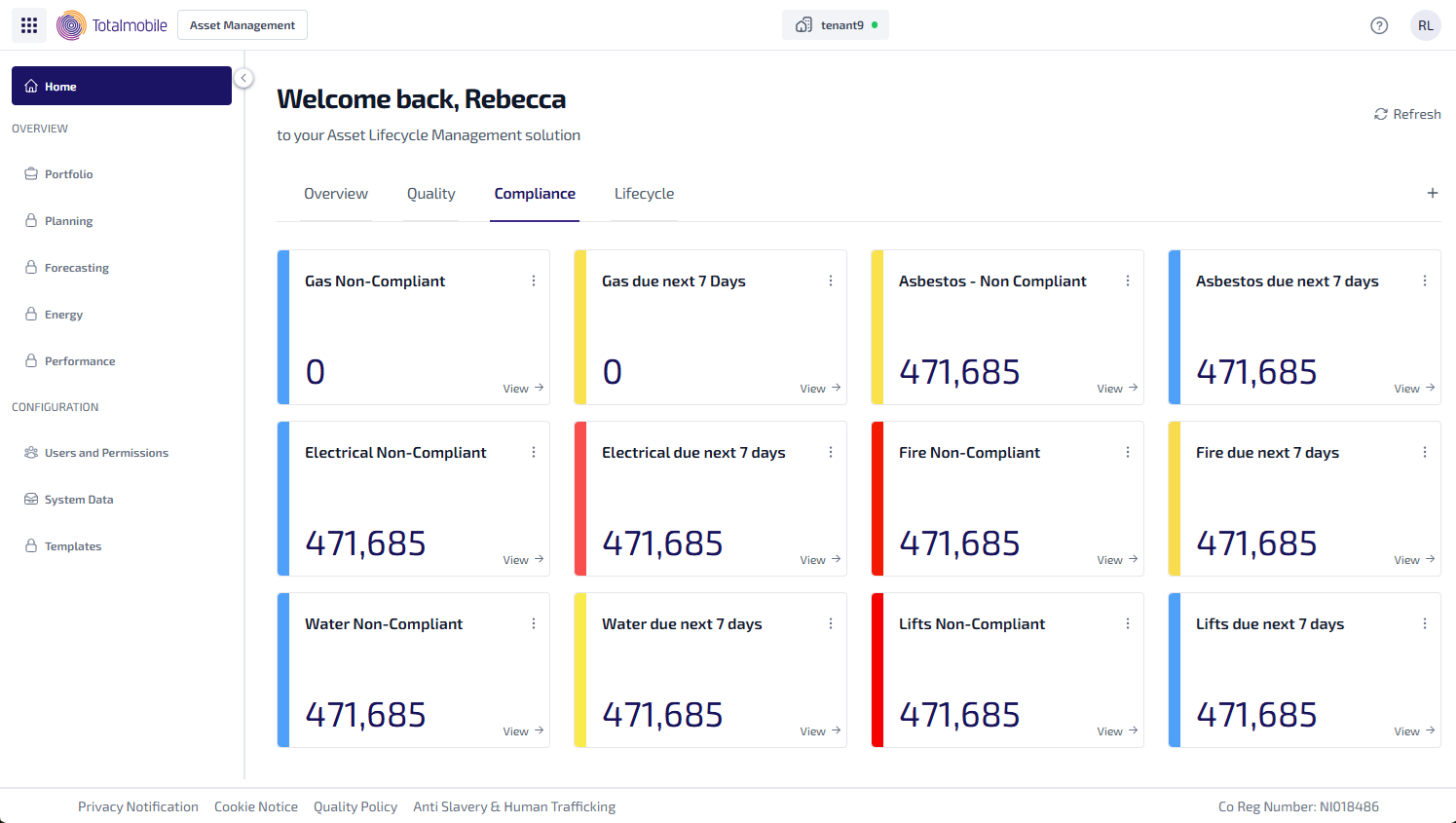 Here is an example of the types of widgets which could be used on the Compliance tab: