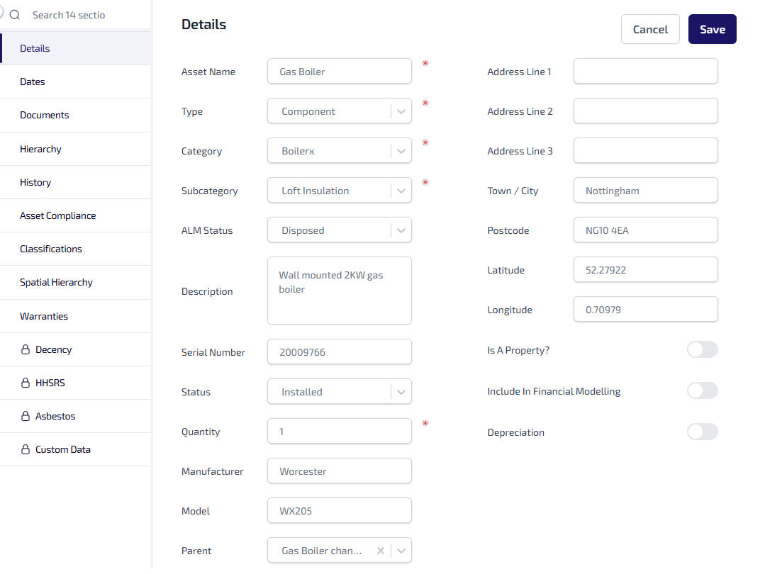 Include In Financial Modelling - indicates whether the asset is included in the financial reports.