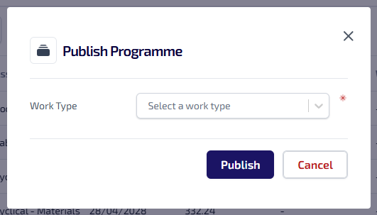 Select the Work Type dropdown list, then select the type of work. This dropdown list is populated by the active Code Templates, and determines the type of work order created for each of the assets in Job Management (Connect). Click System Data - Code Templates for more information about Code Templates.