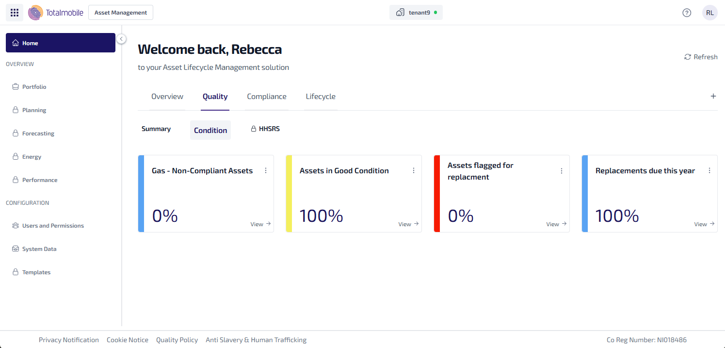 The Condition sub-tab shows you an overview of the of the assets conditions, so you can easily see such things as the percentage of assets which might be in danger of becoming non-compliant.