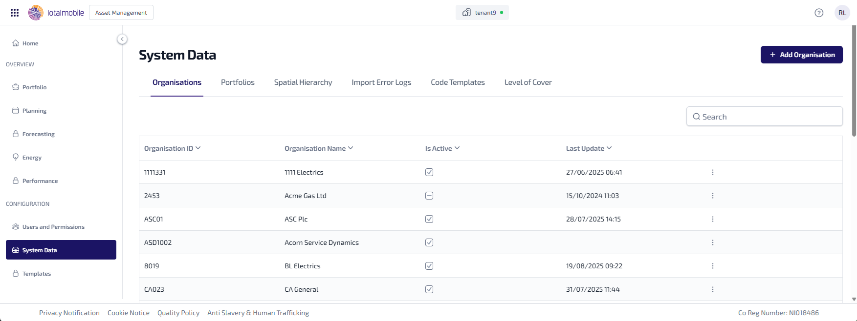 The System Data page lets you manage the associated data available to your assets, such as the organisations and portfolios which can be assigned to them.