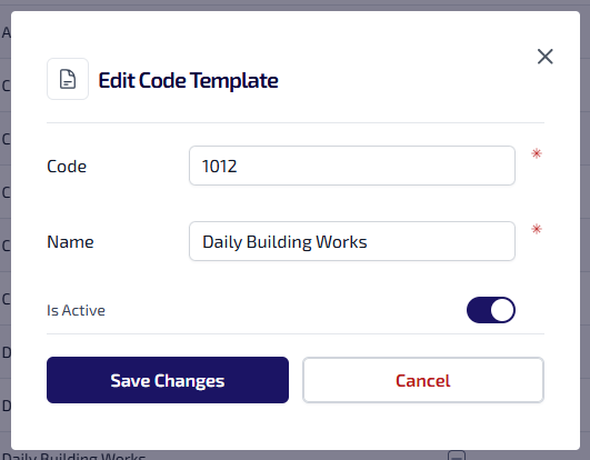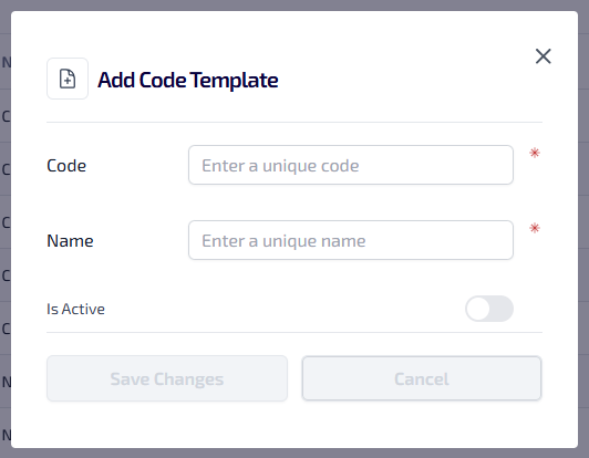 Code - the unique code for the code template.