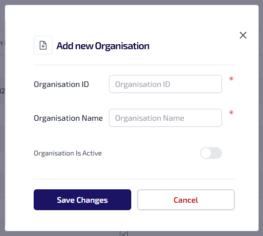 Toggle to indicate whether the Organisation Is Active. When active the organisation is available to be assigned to portfolios and assets.