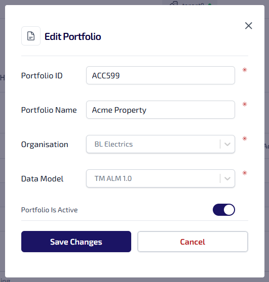 Is Active* - indicates whether the portfolio is available to be assigned to assets.