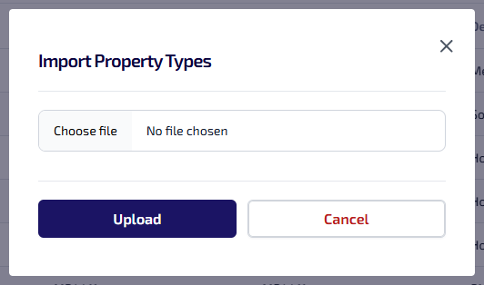If any property types in the .csv file fail the validation check, due to a missing name or duplicate code etc., they will be skipped, and all valid property types will be imported successfully.
