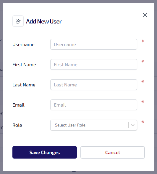 In the User Management tab, select the Select User Role dropdown, then select the role from the following options: