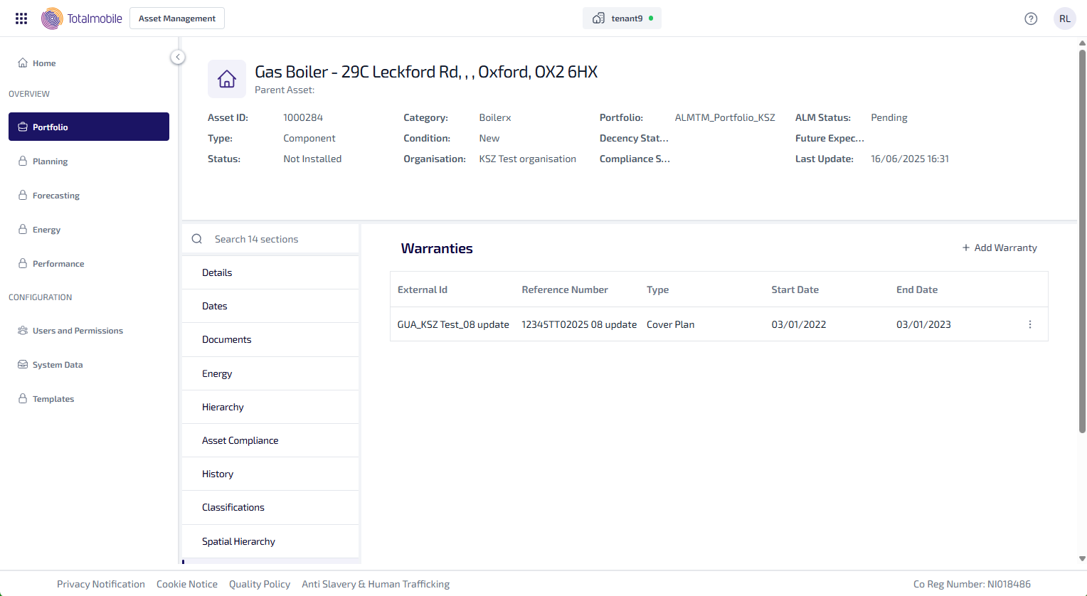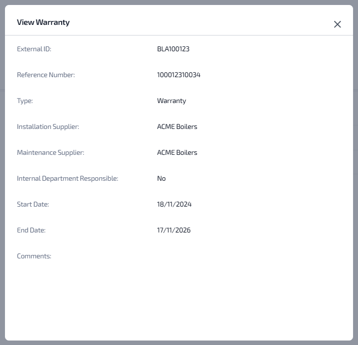 The Asset Details > Warranties tab lets you manage all the warranty type information relevant to the asset.