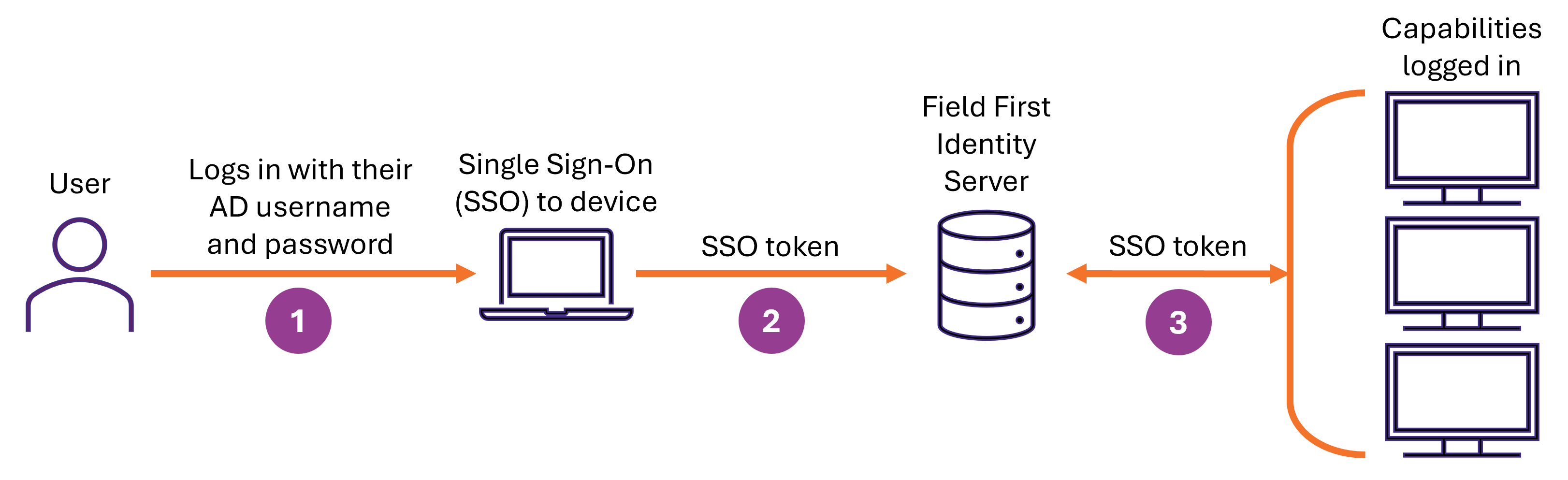 A Single Sign-On token is sent to the Field First Identity Server.