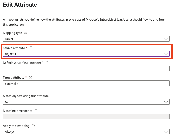 Locate the externalId attribute and select Edit.