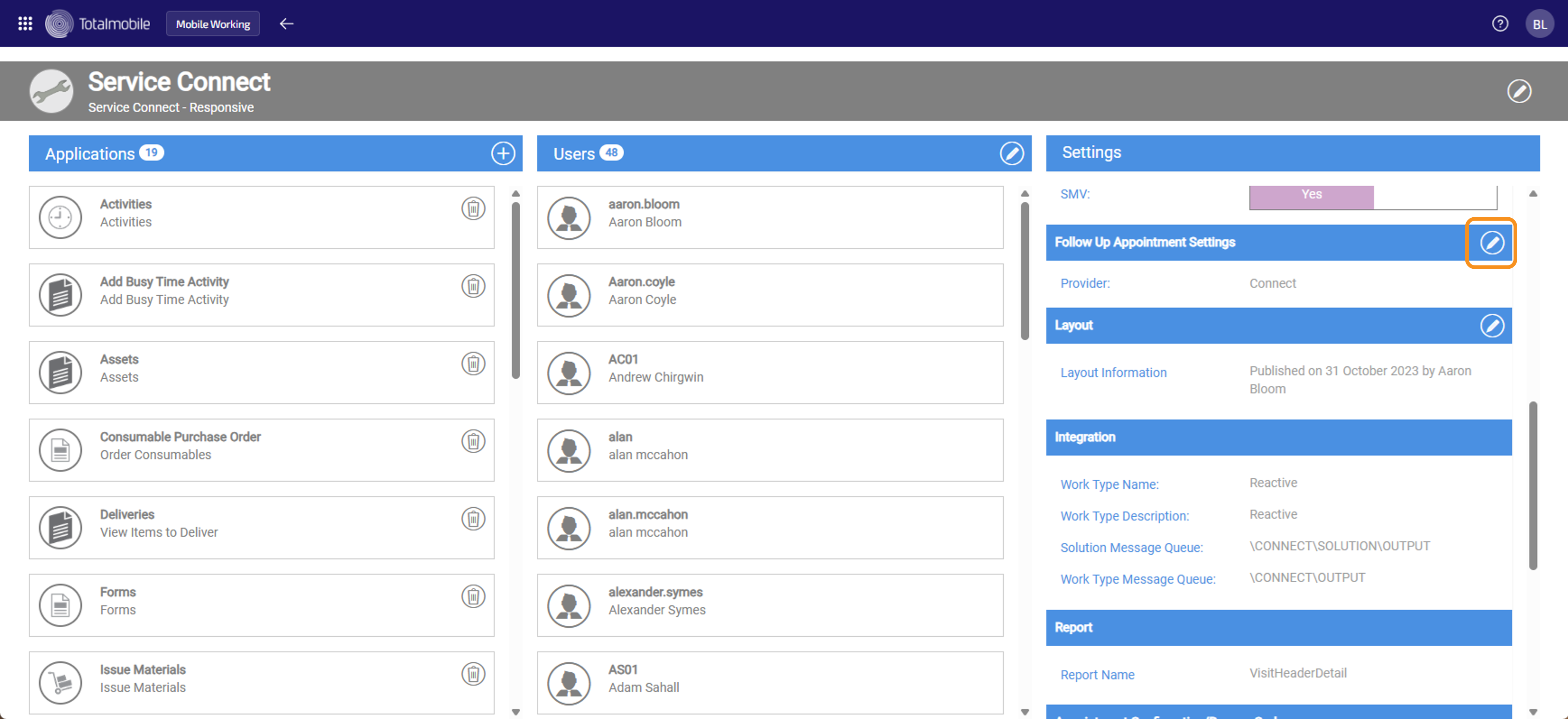 With the Service Connect Solution open, scroll through the Settings section until you reach Follow Up Appointment Settings, then select