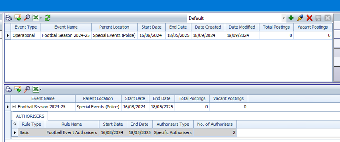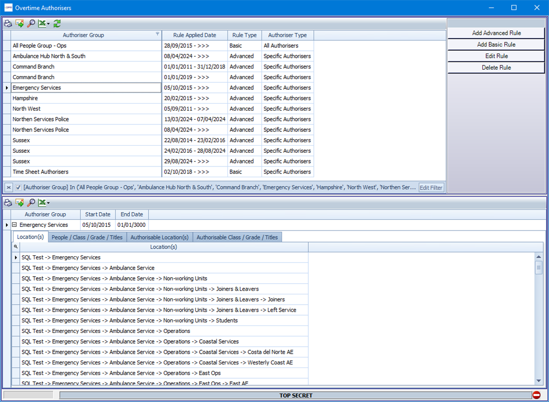 Only Basic Rules that apply to Special Events show in this grid. Advanced Rules can still be applied to Special Event locations from the Overtime Authorisers screen but will not be listed here.