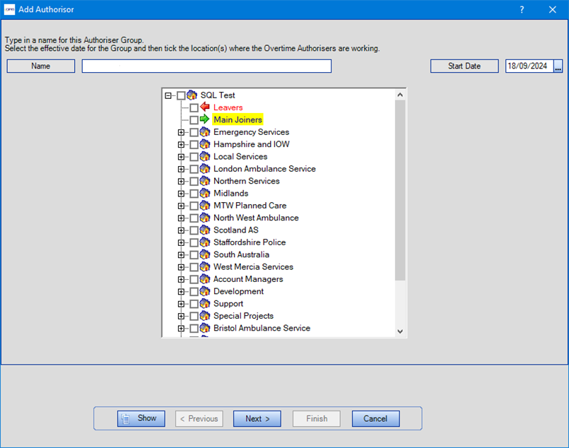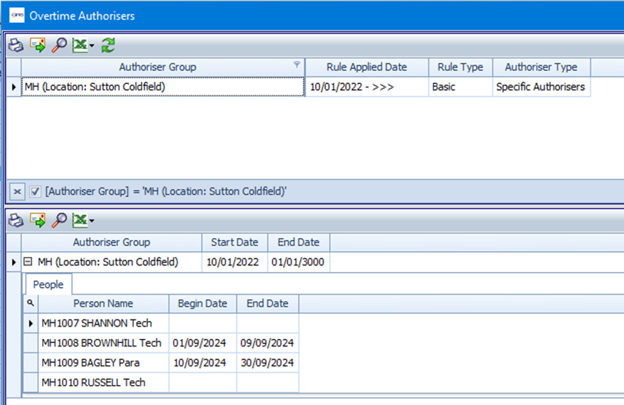 Basic authoriser groups that are created in the Set Up Special Events screen will show in the Overtime Authorisers screen, where they can be edited or deleted.