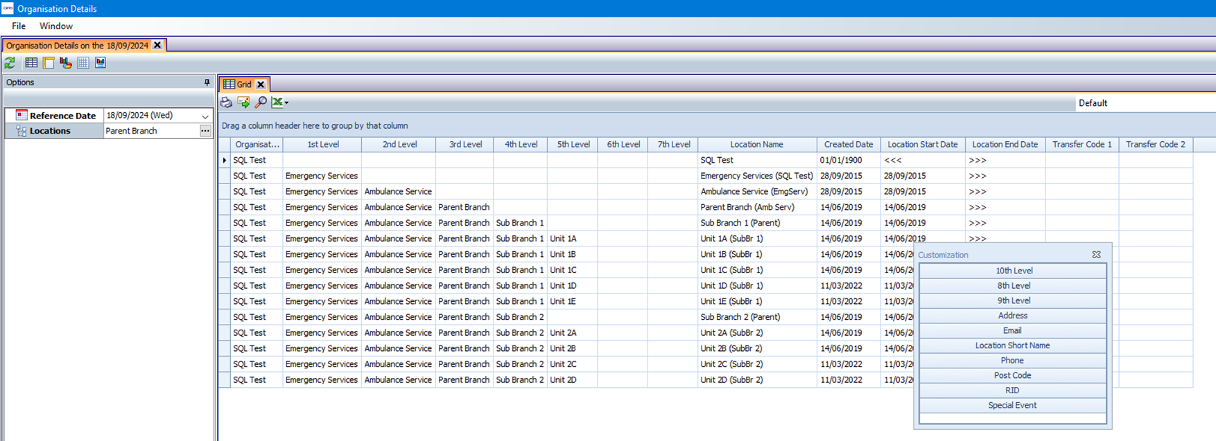 This Grid report allows users to view the details of branches and work units within the Organisation structure.