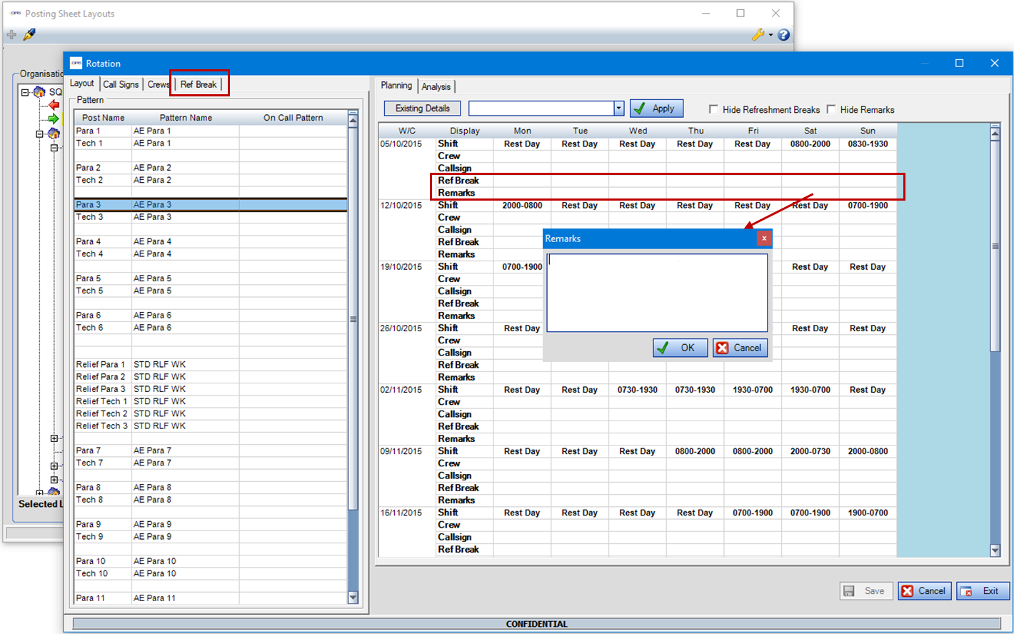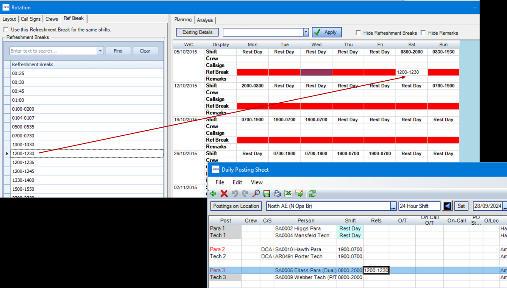Drag and drop Refreshment Breaks in the same way as Call Signs and Crews are added.