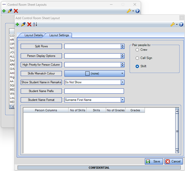 The visibility and formatting of Student names are configurable via the Control Room Sheet Layouts screen (Layout Settings tab).