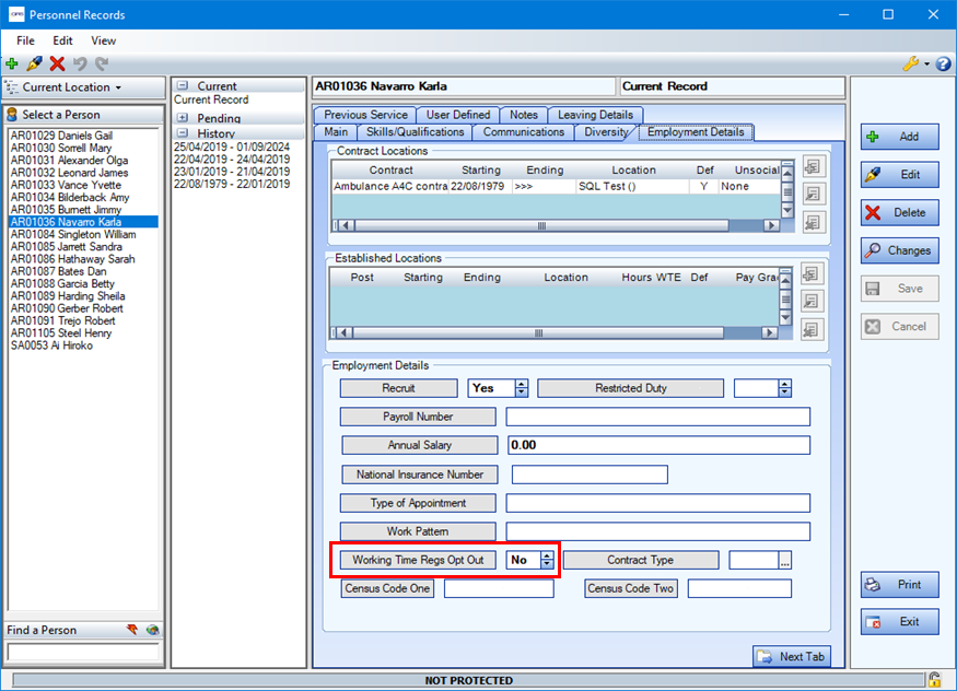 The Individual WTR Report and WTR Summary Report Forward or Backward report options now react to the combination of values for existing System Option WTR Summary - Number of Weeks Back and new option Working Time Regs: Rolling Period In Days.