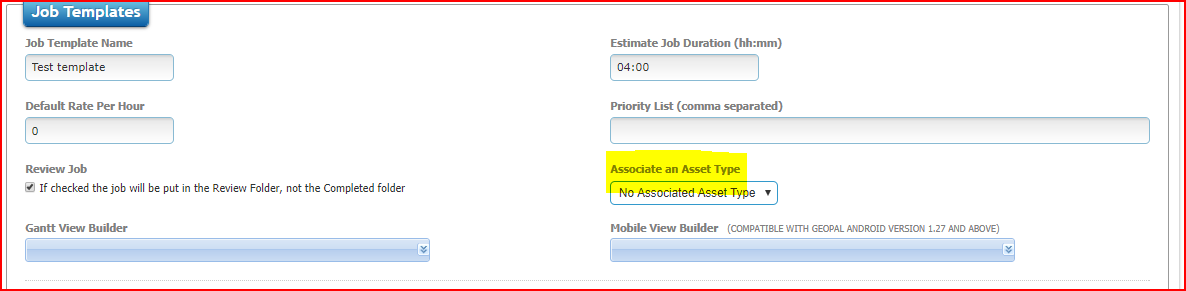 To associate a Job Template with an Asset Type, simply select the Asset Type from the drop down list in the image below.