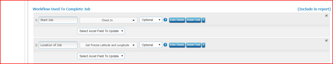 You will see on the Job Workflow steps a new dropdown list. This allows you to select the Asset Field to update from the job step. In the example below, 'Get Precise Latitude and Longitude' will update the Latitude and Longitude Field of the Asset. The job steps can only update similar Asset Fields, for example 'Get Picture' can only update the Asset Picture field and not, for example, the Asset Name field.